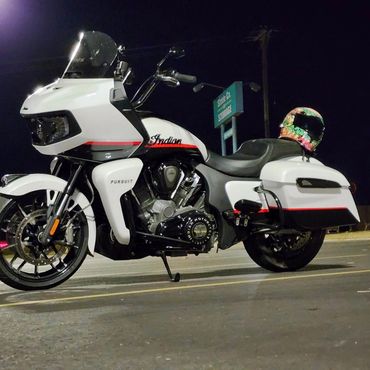 The Pursuit comes with a huge stock windshield, I went with a Freedom Shield 9 inch. I also had my logo laser engraved..